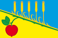 Геральдическое описание герба гласит: «В лазоревом и золотом поле, косвенно пересечённом стеблем в лазури золотым, а в золоте зелёным из которого в лазури произрастает — пять золотых колосьев, в золоте — червлёное яблоко на зелёном черенке с таковыми же листьями».
