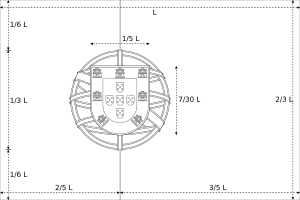 Армиллярная сфера с диаметром равным 1/2 ширины расположена на равном расстоянии от верхнего и нижнего краев флага[1]. Сфера изображает небесную сферу с её основными кругами: на флаге Португалии изображены 4 малые дуги и одна большая (в два раза шире остальных). Малые дуги соответствуют небесному экватору, тропикам Рак и Козерога, а также небесному меридиану, расположенному на границе цветов и делящему сферу на равные части. Большая дуга соответствует эклиптике, большому кругу небесной сферы, по которому происходит видимое годичное движение Солнца.