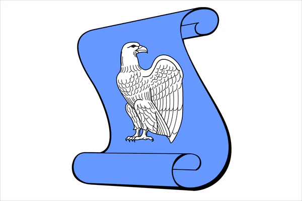 Геральдическое описание герба гласит: «В серебряном поле — лазоревый (синий, голубой) развёрнутый свиток в столб, обременённый серебряным, сидящим, обращённым вправо и обернувшимся орлом со сложенными крыльями».
