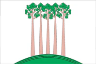 В середине белого полотнища помещено прилегающее к нижнему краю полотнища изображение пяти красных сосен с зелёной кроной на зелёном холме. Габаритные размеры изображения составляют 3/4 длины и 15/16 ширины полотнища».