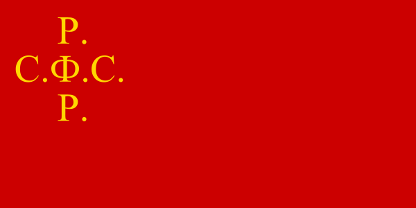 Торговый, морской и военный флагъ Р.С.Ф.С.Р. состоитъ из полотнища красного (алого) цвета, в левомъ углу которого, у древка, наверху, помещены золотые буквы: Р.С.Ф.С.Р. или надпись: Россійская Соціалистическая Федеративная Республика[9].
