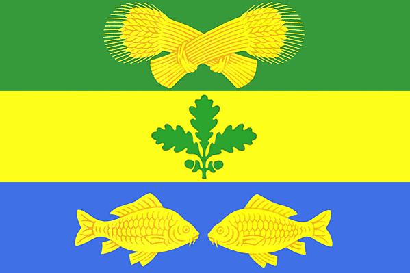 Флаг представляет собой прямоугольное полотнище с соотношением ширины к длине равным 2:3, состоящее из трёх равновеликих горизонтальных полос: верхней — зелёного, средней — золотого и нижней — лазоревого цвета, несущих на себе фигуры из муниципального герба: вверху — два золотых снопа, положенных накрест; посредине — зелёную дубовую ветвь в столб, имеющую три листа над двумя желудями; внизу — двух обращённых друг к другу золотых карпов.