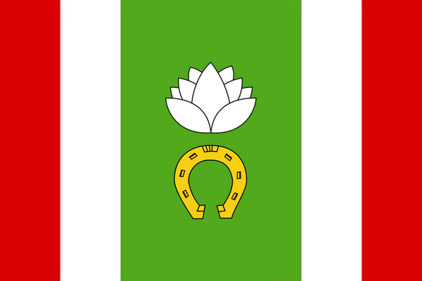 В верхней части полотнища два золотых соединённых крыла, сопровождаемых сверху серебряной восьмилучевой звездой. В нижней части золотой корабль с серебряными парусами.