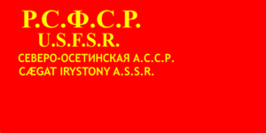 «Государственным флагом Северо-Осетинской А. С. С. Р. является государственный флаг Р. С. Ф. С. Р., который выполнен из красной ткани, с левой стороны вверху под древком золотыми буквами написано „Р. С. Ф. С. Р.“ на русском и осетинском языках; под „Р. С. Ф. С. Р.“ более мелкими буквами дописано „Северо-Осетинская А. С. С. Р.“ на русском и осетинском языках».