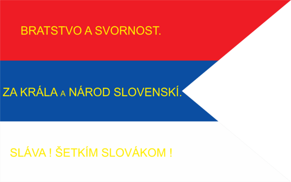 Во время революции 1848—1849 гг. словаки восстали против Венгрии и боролись против неё на стороне Австрии (в итоге Венгрия была побеждена русской армией, присланной Николаем I). Во время восстания словаки сначала использовали красно-белый флаг без герба, затем была прибавлена синяя полоса, заимствованная из российского[1] и хорватского флага. , а хорваты — братским народом внутри Венгерского королевства.