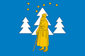 Геральдическое описание герба гласит: «В лазоревом (синем, голубом) поле три серебряные ели, средняя из которых впереди и больше, сопровождаемые вверху семью золотыми звёздами, сложенными наподобие созвездия Большой Медведицы; поверх всего — золотой крестьянин в шапке, армяке (зипуне), подпоясанный кушаком, в лаптях и онучах, держащий в левой руке такой же посох».