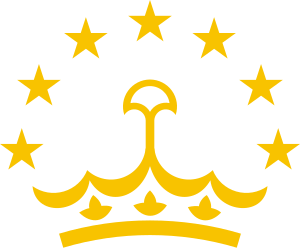 Корона высотой 0,55 ширины белой полосы прогибается в основании по дуге радиусом 1,2 ширины белой полосы. Четыре дугообразных элемента, формирующие верх короны, венчаются в центре частью круга диаметром 0,2 ширины белой полосы.