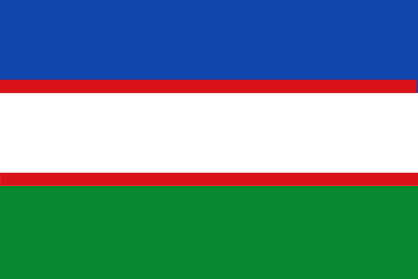 Государственный флаг Республики Узбекистан представляет собой прямоугольное полотнище из трёх горизонтальных полос насыщенного голубого, белого и насыщенного зелёного цветов во всю длину флага.