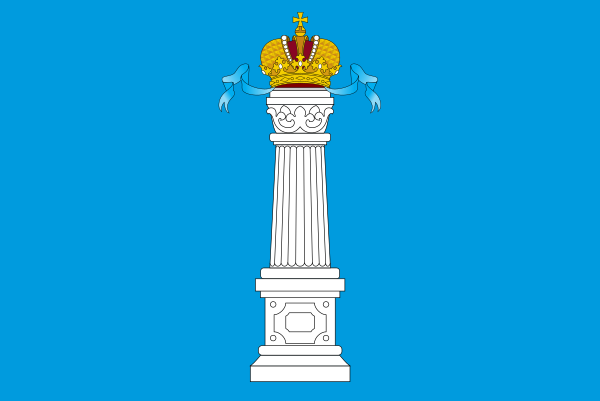 «Флаг Ульяновской области представляет собой двустороннее прямоугольное синее полотнище с отношением ширины флага Ульяновской области к его длине 2:3, с воспроизведённой по центру белой колонной с фигурной капителью и базой на постаменте, увенчанной Императорской короной, выполненной жёлтым, белым и пурпурным цветом, с голубыми лентами, отходящими в стороны. Общая высота композиции флага Ульяновской области составляет 9/10 ширины полотнища».