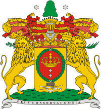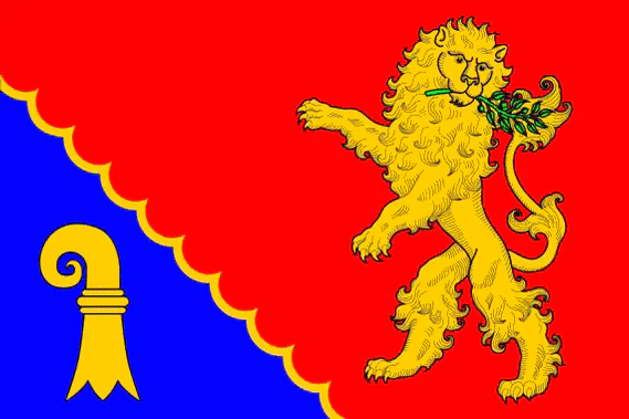 Геральдическое описание герба гласит: «Поле скошено справа золотой чешуйчатой нитью червленью (красным) и лазурью (синим, голубым) со смещением вниз и влево; в червлени — золотой львиный леопард, держащий в зубах зелёную лавровую ветвь; в лазури — золотое навершие епископского посоха».