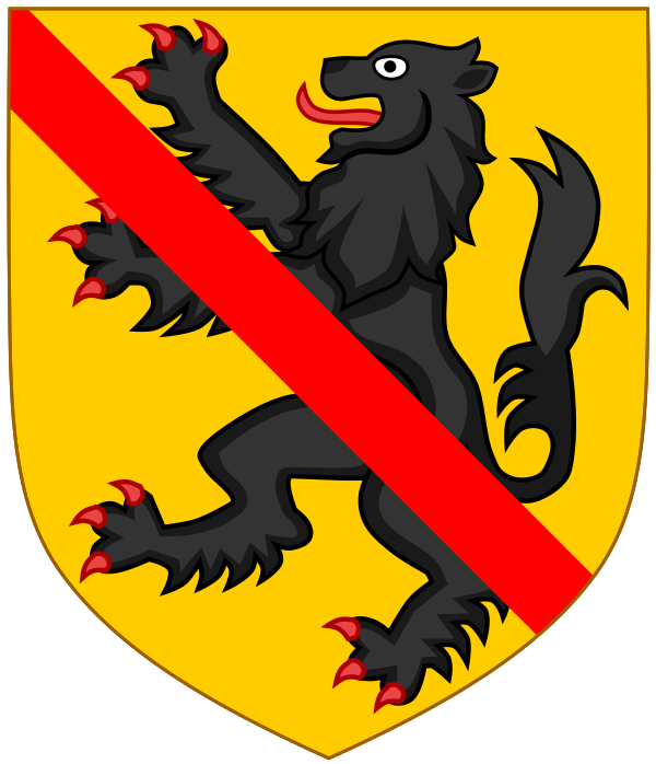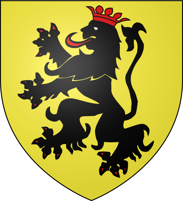 Создание флага и герба со львом обычно приписывается графу Фландрии Филиппу Эльзасскому, который, вернувшись из крестового похода в 1178 году, был атакован королем Албании Нобилионом, которого он убил и взял его герб, чтобы использовать его как свой собственный[7]. По другой версии, герб английского происхождения и является символом превосходства христианских рыцарей[8].