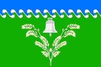 «Полотнище зелёного цвета с отношением ширины к длине 2:3, несущее вдоль верхнего края синюю полосу, ограниченную снизу узкой узорной белой полосой в виде бегущих волн (общая габаритная ширина синей и белой полос — 4/15 от ширины полотнища). Основная, зелёная часть несёт белые изображения рисовых метёлок и колокола».