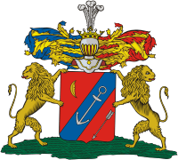 Геральдическое описание герба, утверждённого 10 марта 2009 года[1], гласит: «В червлёном (красном) поле два серебряных пониженных меча в серебряных ножнах накрест с золотыми рукоятями, направленными вверх; рукоять меча, положенного в правую перевязь, завершена львиной головой, другого — орлиной головой; поверх скрещения мечей — золотой полумесяц (с изображением лица) рогами вверх. Все сопровождено вверху серебряным свитком в пояс, перевязанным золотой тесьмой, скреплённой русской и шведской печатями первой четверти XVII века».