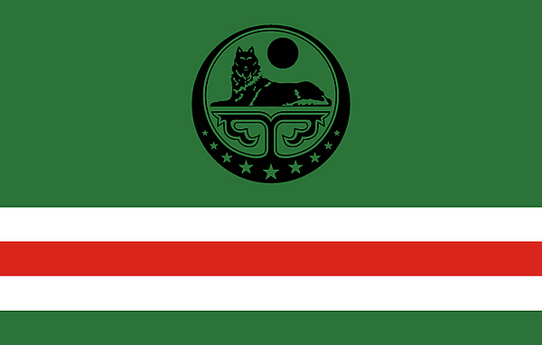 2 ноября 1991 года постановлением № 7 Парламента самопровозглашенной Чеченской Республики (Нохчи-Чо) (16 января 1994 г. указом Джохара Дудаева в название введено дополнительное слово Ичкерия) был утверждён флаг — прямоугольное полотнище зелёного цвета с соотношением сторон 7:11. В нижней части флага — три полосы: белая, красная и снова белая в одну десятую ширины флага каждая; эти полосы отделены от нижнего края полотнища полосой зелёного цвета такой же ширины. Известен и другой вариант флага, где помимо полос добавлен сам герб Ичкерии — лежачий волк с 9-ю звёздами-тукхумами. Дудаев придумал данный вариант на съезде непредставленных народов в Голландии в 1990 году. Окончательный облик герба и флага нарисовала жена Дудаева Алла, которая, рисуя волка (чечен. нохчийн борз), опиралась на Акелу из «Книги джунглей»[4].