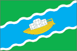 «Прямоугольное зелёное полотнище с отношением ширины к длине 2:3, воспроизводящее изображение фигур из герба поселения, выполненное белыми, голубыми, жёлтыми и оранжевыми цветами».