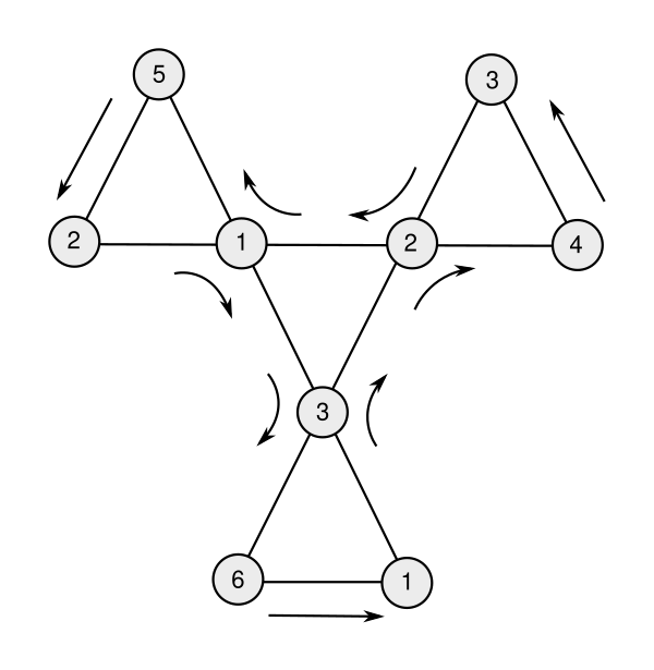 При обходе Таккермана плоскости гексагексафлексагона будут раскрываться в порядке: 1,2,5,1,2,3,4,2,3,1,6,3 (или в обратном порядке), после чего последовательность повторится. Эту последовательность называют путём Таккермана[19][17].