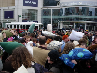 Акции с ярко выраженной экстремальной направленностью. Могут нарушаться какие-то моральные устои (или даже действия, квалифицирующиеся как мелкое хулиганство), или даже как-то провоцировать случайных прохожих. Такие акции не соответствуют правилам флешмоба. Например, Бой подушками.