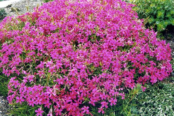 | Флокс прелестный (Phlox amoena Sims.) | С конца мая в течение 25—30 дней. | Малиново-розовые (цветки некрупные, собраны в небольшие щитки). | Цветение обильное. Сплошного ковра не образуют, хотя и растут достаточно густо. |