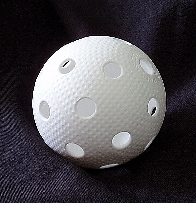 К игре допускаются только специальные сертифицированные мячи. Мяч должен быть сделан из пластмассы, его диаметр составляет 72 мм, максимальная масса — 23 грамма. В мячике имеется 26 отверстий. Он должен быть покрашен в однотонный цвет нефлюоресцентной краской[24].