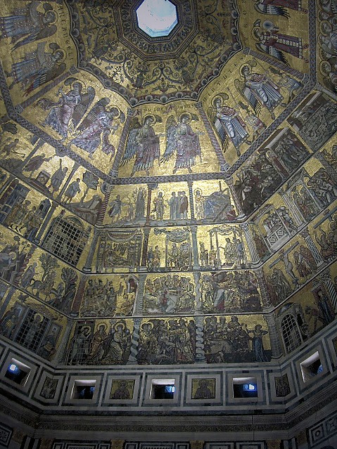 Древнейшей из дошедших до нас крупной работой школы является мозаичное убранство купола Баптистерия Святого Иоанна, выполненное около 1225 года. В работе принимали участие и венецианские художники, но, несмотря на это, тосканские художники создали в мозаике выразительные, живые сцены, показывающие эмоциональное состояние героев, что шло вразрез со сложившимися византийским традициями. Коппо ди Марковальдо, ответственный за изображение центральной фигуры Христа, был самым ранним из флорентийских художников, участвовавших в работе. Объём ощущается зрителями в панно «Мадонна с младенцем», написанном для церквей Серви в Сиене и Орвието.