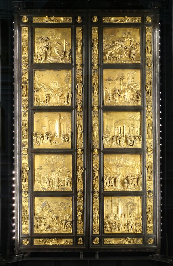 Пластика фигур, созданных Гиберти, настолько выразительна, что великий Микеланджело, обычно скупой на похвалы, не сдержал восхищения и воскликнул: «Эти врата так прекрасны, что годились бы для дверей рая». Так название «Врата Рая» (La Porta del Paradiso) вошло в историю искусства[11].