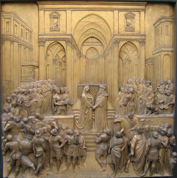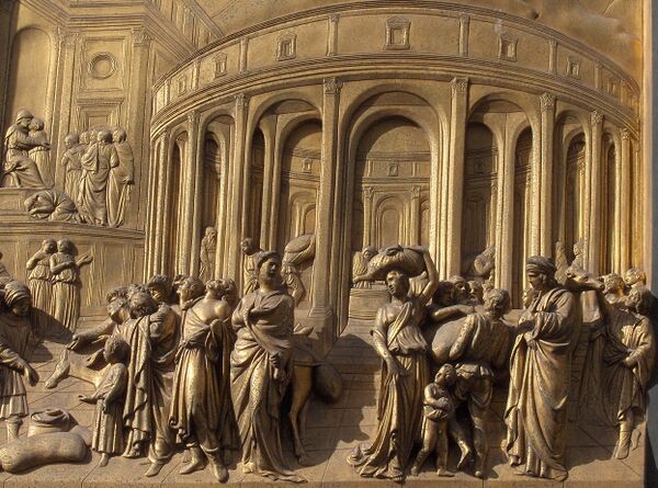 В 1401 году Цех торговцев тканями «Арте ди Калимала» (Consoli dell’Arte di Calimala) объявил конкурс на украшение рельефами ещё двух бронзовых дверей Флорентийского баптистерия. В конкурсе приняли участие Филиппо Брунеллески, Якопо делла Кверча, Лоренцо Гиберти и ряд других мастеров. Конкурс под председательством 34 судей, на который каждый мастер должен был предоставить выполненный им бронзовый рельеф «Жертвоприношение Исаака», длился год. Работа, представленная Лоренцо Гиберти была признана лучшей.
