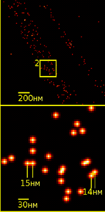 Если для конфокальной флуоресцентной микроскопии максимально достижимое пространственное разрешение составляет около 200 нм, для методов микроскопии сверхвысокого разрешения (STED, PALM и т. д.) разрешающая способность достигает нескольких десятков нанометров[26][27].