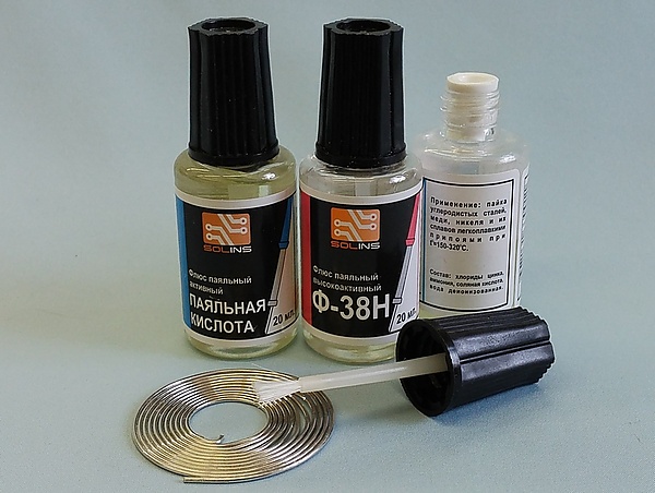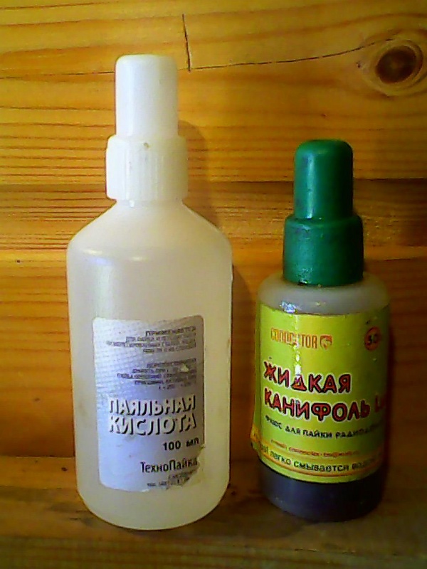 - паяльная кислота — водный раствор хлорида цинка, активный флюс