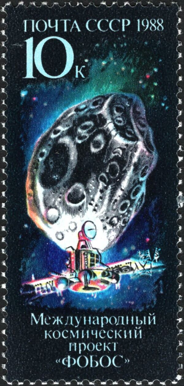 7 июля 1988 года тиражом 3,55 миллиона экземпляров была выпущена многоцветная почтовая марка СССР (ЦФА [АО «Марка»] № 5964) работы художника В. Давыдова с изображением космического аппарата «Фобос», спутника Марса Фобоса и космоса, с текстом «Международный космический проект „Фобос“». Проекту «Фобос» был также посвящён почтовый блок СССР, выпущенный тиражом 1,3 миллиона экземпляров 24 апреля 1989 года (ЦФА [АО «Марка»] № 6066). Выполненный художником Римом Стрельниковым, блок представляет собой многоцветное изображение космического аппарата «Фобос» на фоне планеты Марс, её спутника Фобоса и космоса, с текстом «Международный космический проект „Фобос“».