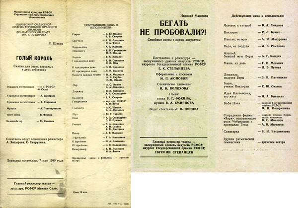 С Кировским областным драматическим театром Фокина связывали давние отношения, поскольку ещё в 1980-е годы большой популярностью пользовались спектакли «Бегать не пробовали?!» по пьесе Николая Машовца в постановке Евгения Степанцева и «Голый король» по пьесе Евгения Шварца в постановке Михаила Салеса. Оба спектакля объединяло то, что их наполняли песни на стихи Валерия Фокина. Журнал «Театральная жизнь» в 1986 году писал о песнях спектакля «Бегать не пробовали?!»: «Эти песни задают тон действию, согревают спектакль, подхватывают речь автора пьесы и по-своему её дополняют. Лирические и чуть грустные песни Фокина в исполнении Смирнова рождают атмосферу душевного покоя и тепла…». Весьма узнаваемым адресатом поэта во второй половине 1980-х годов был один из персонажей фокинского стихотворения, прозвучавшего в пьесе «Голый король»[4]: