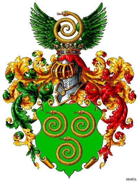 В нашлемнике, сверх дворянской короны, эмблема фамилии — золотая улитка (в описании герба названная «змеем, свернувшимся в клубок») — повторена между развернутыми зелёными листьями. Намёт зелёный с красным, подложен золотом. Герб рода фон Визиных внесён в Часть 3 Общего гербовника дворянских родов Всероссийской империи, стр. 41.