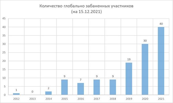 Несмотря на то, что Фонд занимается технической организацией проектов, а не собственно их наполнением, Фонд является единственной организацией, которая имеет техническую возможность без разъяснений и обсуждений в сообществе глобально «банить» любых участников любых проектов Фонда (то есть запрещать им дальнейшее участие во всех проектах «Викимедиа» под любыми аккаунтами; такой возможности не имеют даже администраторы и вообще участники с любыми флагами всех его проектов, и уж тем более правительства стран, в юрисдикции которых участники проектов находятся), и периодически этой возможностью пользуется, даже в отношении администраторов проектов. Эту возможность Фонд применял: в 2013 году — 0 раз, в 2014 году — к 2 аккаунтам, в 2015 — к 9, в 2016 — к 7, в 2017 — к 9, в 2018 — тоже к 9, в 2019 — к 19, в 2020 — к 30, в 2021 (на 15 декабря) — к 40. При этом Фонд оставляет за собой право блокировать доступ ко всем проектам не только для их участников, но и для лиц, которые никогда в проектах Фонда не участвовали, но, как было решено Фондом, представляют для сообщества серьёзную угрозу[29].
