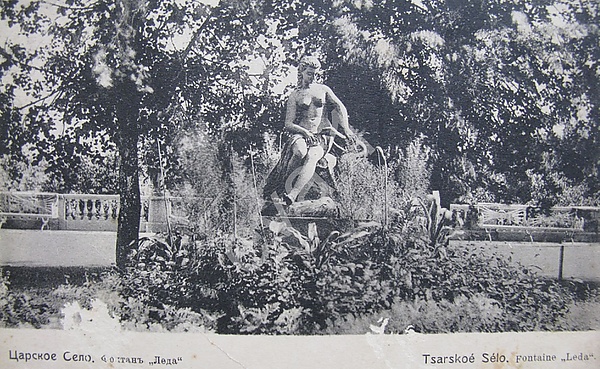 В небольших гротах по сторонам лестницы Камероновой галереи Екатерининского сада была установлена скульптура из металла «Леда с лебедем» в виде фонтана неизвестного автора. Во второй половине XIX века она была перенесена, уже не как часть фонтана, а отдельная скульптура на гранитную террасу Руски и простояла там до Великой Отечественной войны.