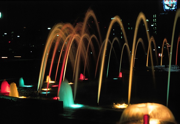Фонтан находится на одной линии с Куполом атомной бомбы и Мемориалом мира на площади перед главным зданием Мемориального музея мира. Несколько фонтанов расположены в пруду, который простирается на 27 метров с востока на запад и 19 метров с юга на север. В минуту фонтан выбрасывает 11 тонн воды на высоту в 10 метров. В ночное время суток он освещается разноцветными подводными лампами.