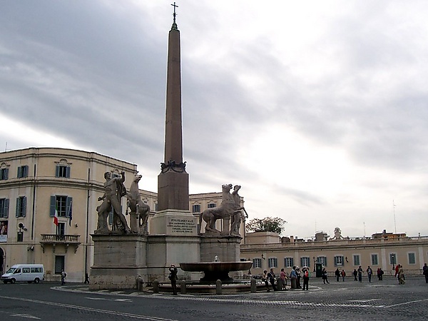 Во второй половине семнадцатого века Папа Александр VII решил перенести фонтан на площадь Санти-Апостоли, но проект не был реализован, как и задуманная Папой Климентом XI перепланировка всей площади. В 1782 году папа Пий VI поручил архитектору Джованни Антинори вместе с Паскуале Белли усовершенствовать фонтан и поставить обелиск, взятый с Марсова поля (в древности он стоял у входа в Мавзолей Августа; парный ему обелиск установили на площади Санта-Мария-Маджоре у восточного фасада церкви). Антинори разобрал фонтан и начал перемещать Диоскуров, чтобы расположить радиально по отношению к обелиску, так, как мы видим их сегодня. Дело оказалось настолько сложным, что потребовалось четыре года неудачных попыток «повернуть коней» и поставить обелиск. Римляне посмеивались над Антинори и придумали шутливую анаграмму его имени: Non tirai («Не тяну»).
