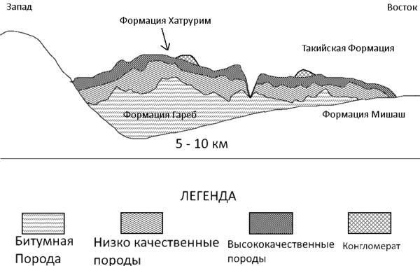 Скальные обнажения проявляются в нескольких местах в районе Иудеи, также небольшие обнажения были обнаружены вблизи Шоссе 1 (Иерусалим - Тель-Авив), перед Кфар-Шмуэль, недалеко от Кфар-Урия и к западу от города Таркумия. Большие обнажения находятся вблизи Маале-Адумим, около крепости Гиркания, в районе Наби Муса и в Джабал Хермон (к северу от Таркумии). Самый большой раскол (несколько десятков километров) был обнаружен в долине Хатрурим. Общая площадь обнажений формации Хатрурим достигает нескольких сотен квадратных километров.