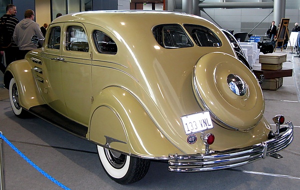 Сюда относятся автомобили линии Airflow марок Chrysler и De Soto выпуска 1934—1937 годов и подражания им, например Toyota AA 1936 года и Volvo PV 36 «Carioca». Автомобили Airflow имели уже в 1934 году многие атрибуты, которые станут общепринятыми только к концу тридцатых годов: V-образное лобовое стекло, утопленные фары, наклонную заднюю стенку кузова, закрытые задние колёсные арки и так далее. Однако, в те годы они оказались непонятны публике, и особого коммерческого успеха серия не имела. Большего успеха добилась линия моделей Airstream с гораздо более традиционным дизайном, отличавшаяся от других автомобилей в основном большей «зализанностью» обводов и псевдо обтекаемым оформлением мелких деталей — фар, их кронштейнов, поворотников и так далее.