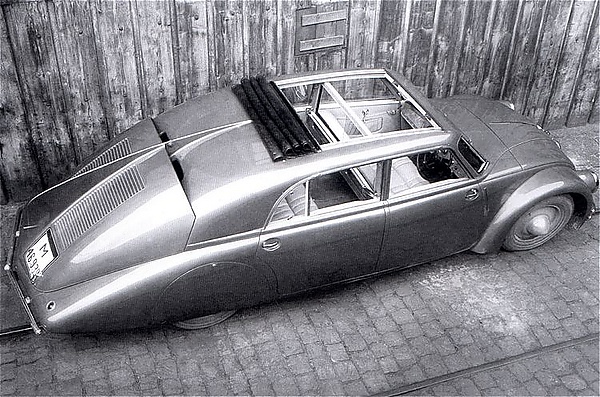 Особенно оригинальна и удачна была форма заднемоторного автомобиля Tatra T77, выпускавшегося с 1934 по 1938, а также модернизированной «Татры» T87, выпускавшейся с 1936 по 1950 год. Для этих автомобилей были характерны каплевидная задняя часть кузова, закруглённый капот спереди (вернее, крышка багажника), панорамное лобовое стекло (составленное из трёх плоских частей), утопленные в крыльях фары, задние крылья, целиком поглощённые боковиной кузова, крыша, плавно спускающаяся к заднему буферу и имеющая в задней части киль-стабилизатор для улучшения аэродинамической устойчивости.