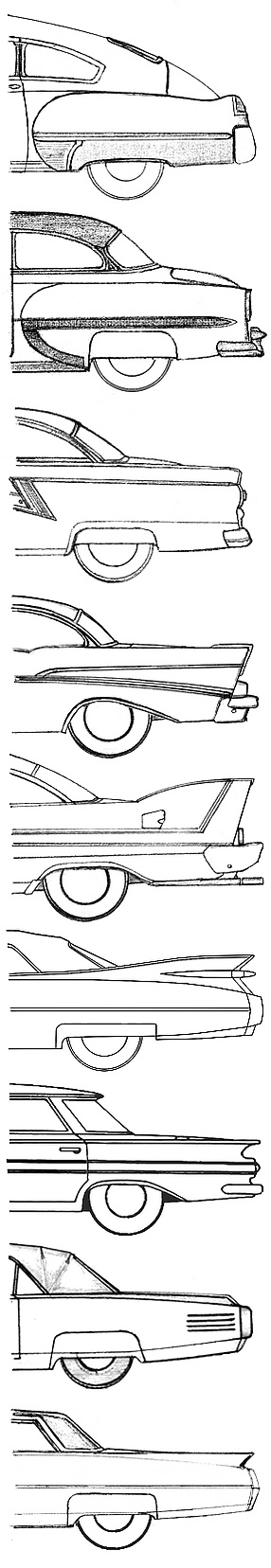 Именно в эти годы появился трёх объёмный силуэт кузова «седан», характерный для него по сегодняшний день. С ними конкурировали фастбэки с каплевидной задней частью. Небольшая подножка прикрывается нижней частью двери, на некоторых моделях подножка отсутствует.