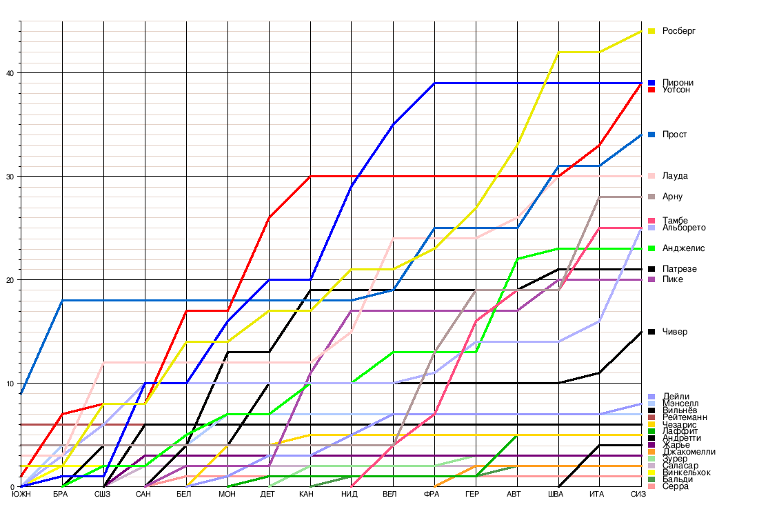 Этот год часто вспоминают любители статистики Формулы 1 – когда ещё в течение года побед добивались 11 гонщиков из семи команд (а на подиуме побывали 18 человек из девяти «конюшен»!), гонки выигрывались с 17-го места, а чемпион лишь раз за сезон побывал на вершине пьедестала? Применение дозаправок; возвращение Ники Лауды, мгновенно устроившего забастовку гонщиков; победа с преимуществом в 0,05 секунды; три автомобиля, пересекших линию финиша, из двадцати стартовавших; действующий чемпион мира, не прошедший квалификацию на одном из этапов и выигравший следующий; новый победитель первенства, не набравший за предыдущий сезон ни одного очка — это только некоторые штрихи удивительного сезона 1982 года в Формуле 1.
