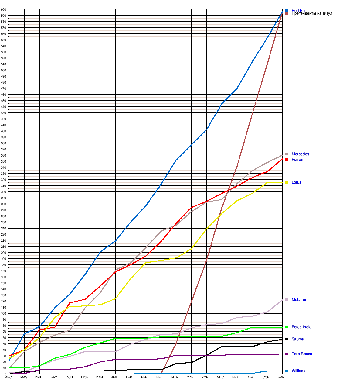 Серым цветом фона отмечена команда Williams, работавшая с машиной 2012 года.