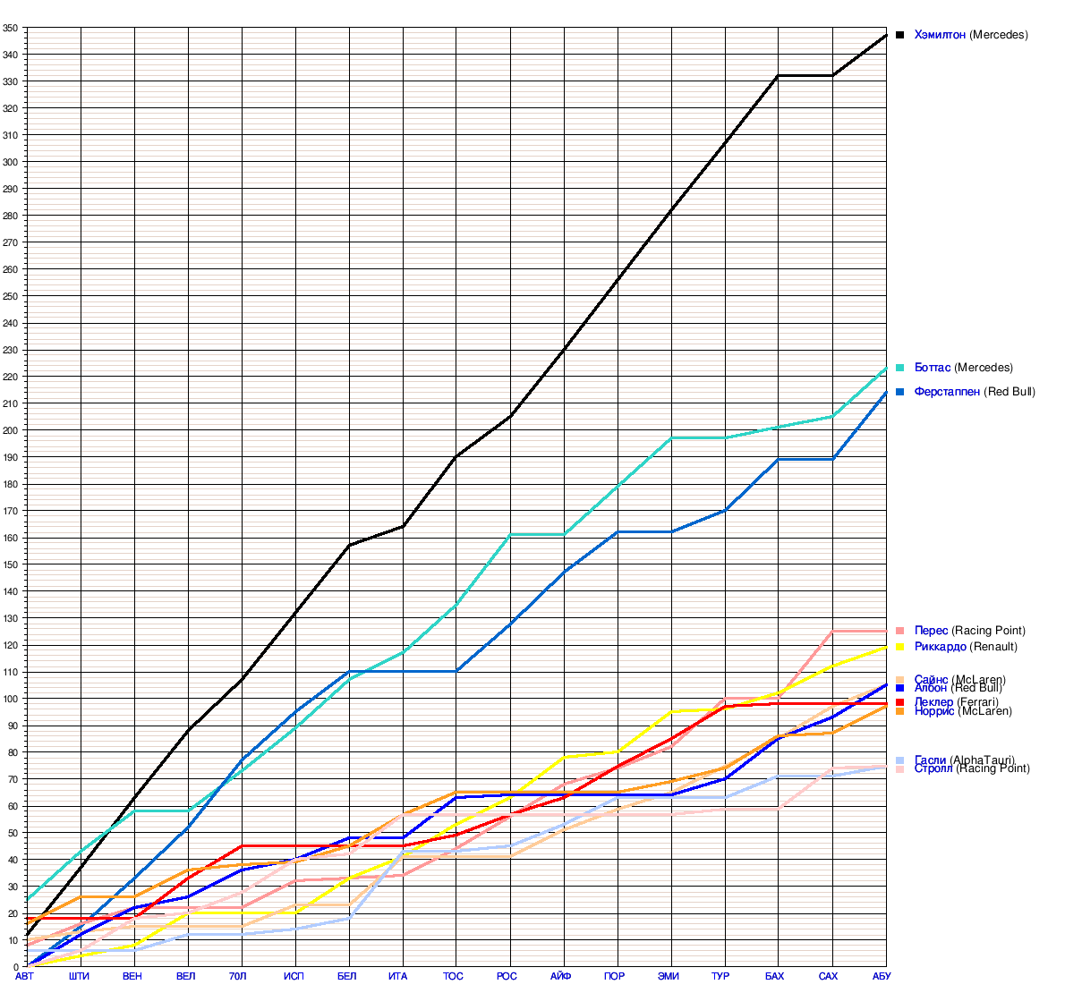 | 20 | 20 | Сход | 12 | 10 | Сход | Сход | 15 | 17 | Сход | Сход | 12 | 13 | 16 | Сход | 17 | 17 | 15 | 18 | 1 | |