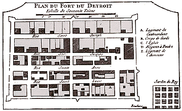 Форт был построен французами на реке Детройт с тем, чтобы сдерживать английскую колонизацию Северной Америки к западу от Новой Англии и монополизировать торговлю пушниной с местными индейцами. Первой постройкой нового французского поселения стала католическая церковь Св. Анны, которая сгорела вместе с частью форта во время пожара 1703 года и была впоследствии несколько раз перестроена. Укрепления состояли из бревенчатого частокола, возвышающегося на 12 футов (около 3,5 м) с вышками для часовых на каждом углу.