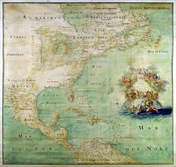 К концу XVII века большая часть территории Северной Америки была поделена европейскими державами. Испания предъявила права на Флориду, территорию современно Мексики и большую часть юго-запада континента. Северная часть побережья Атлантического океана попала в сферу интересов Британии, а французские территории охватывали значительную часть современной Канады и Иллинойса (фр. Pays des Illinois). Французы опасались вторжения со стороны стран-соперниц. В 1681 году французский дворянин Рене-Робер Кавелье де ла Саль отправился в экспедицию вниз по реке Миссисипи из Новой Франции. Он предполагал, что таким путём сможет добраться до Тихого океана, но вместо этого вышел в Мексиканский залив. Эта территория уже была открыта испанским исследователем Эрнандо де Сото и объявлена испанским владением за 140 лет до де ла Саля. Тем не менее, 9 апреля 1682 года де ла Саль объявил долину Миссисипи французской территорией и назвал её в честь короля Людовика XIV Луизианой.