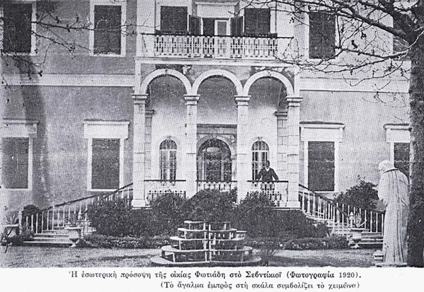 Н. Карарас описывает её как «дворец с 40 комнатами, с садом где стояли 12 статуй изображавших месяцы и 4 бόльших статуй изображавших времена года»[10] Продолжая скупать землю на Меандре, Д. Фотиадис (старший) построил школу и отреставрировал церковь в Севдикёе. Он построил ещё с десяток домов в Смирне и умер от сердечного приступа, когда отцу писателя, было 16 лет. «Дом (Склеп) Димитриса Фотиадиса» был самым большим на православном кладбище Смирны, которое после 1922 года было вскопано турками, устроивших здесь футбольный стадион[9]:А-18.