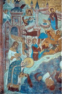 | Изображение из книги Н. Леопардова «О значении для России константинопольского патриарха Фотия» (1891) с Фреска Софийского собора в Киеве | ||