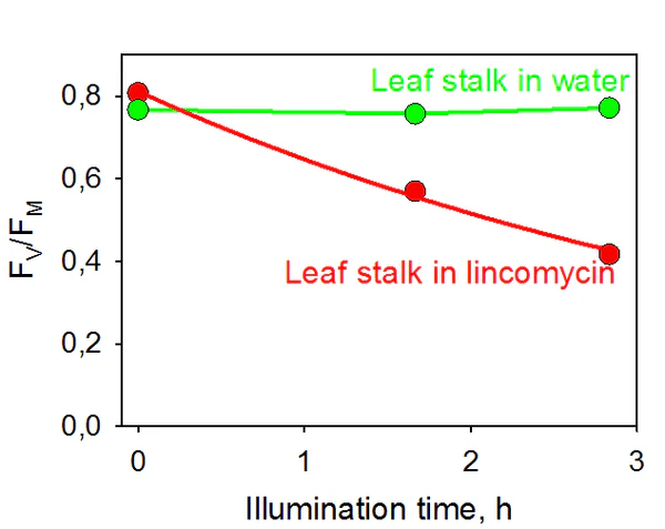 При исследовании фотоингибирования цикл репарации часто блокируют антибиотиками (линкомицин или левомицетин), которые останавливают синтез белка в хлоропласте. Синтез белка происходит только в не разрушенном образце, так что линкомицин не нужен, когда фотоингибирование измеряется в изолированных мембранах[27].