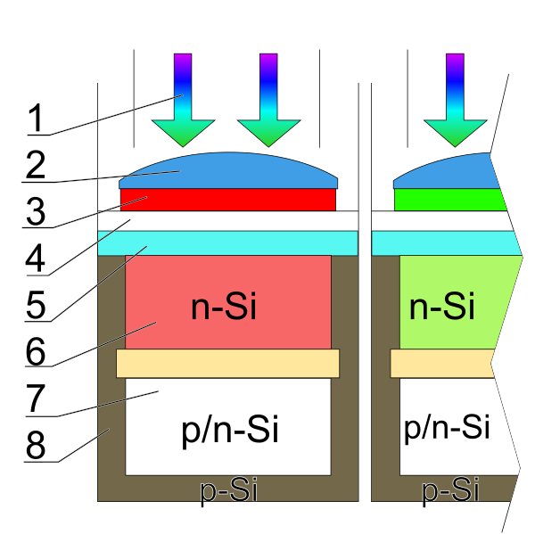 6 — кремниевый канал n-типа: зона генерации носителей — зона внутреннего фотоэффекта;