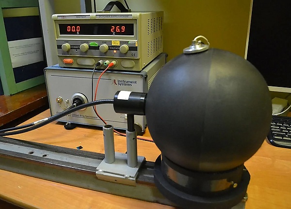 Излучение вводится внутрь шара через небольшое отверстие, а диффузно отражённое от внутренней поверхности стенки шара фиксируется с помощью чувствительных датчиков[4].