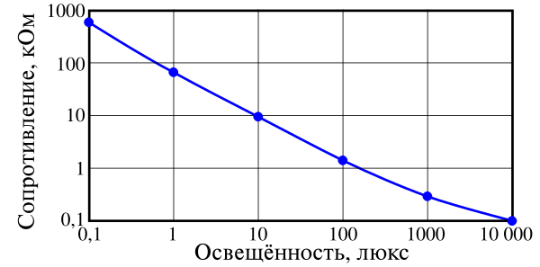 - порог чувствительности — величина минимального сигнала, регистрируемого фоторезистором, отнесённая к единице полосы рабочих частот;